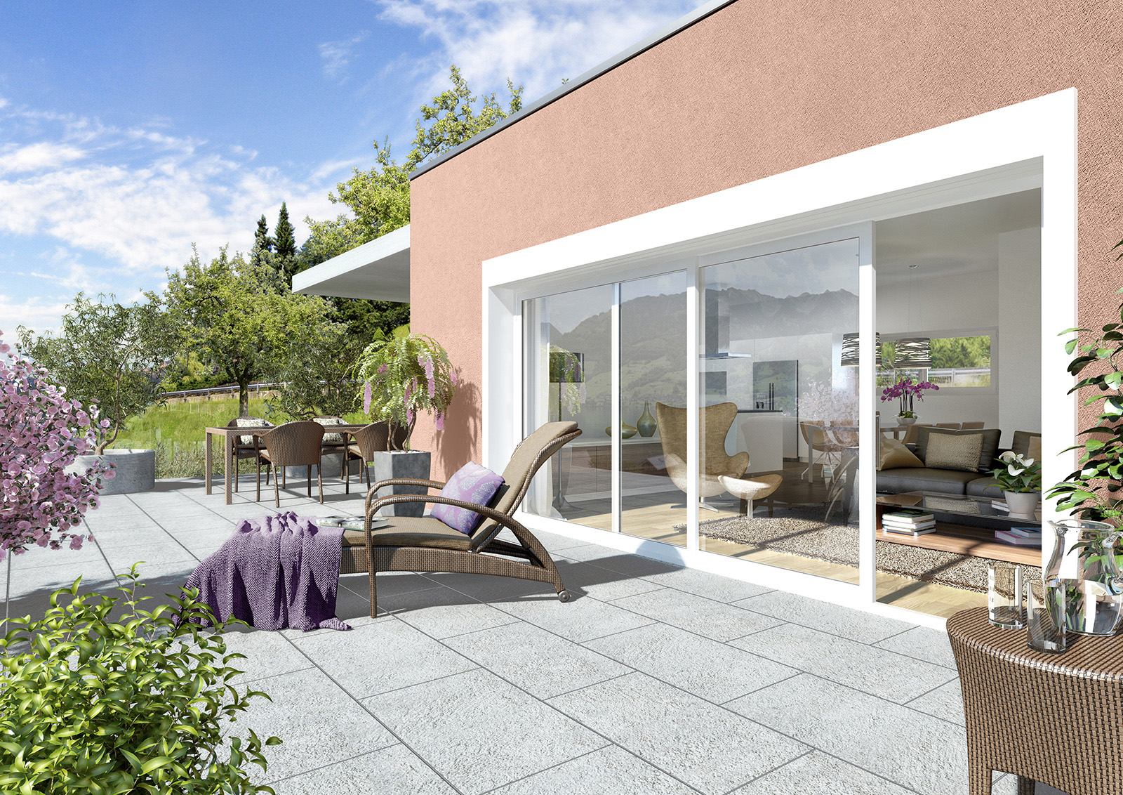 Alle Wohnungen haben grosszügige Terassen und Gärten. Hier die Terrasse von Sky Eden A.