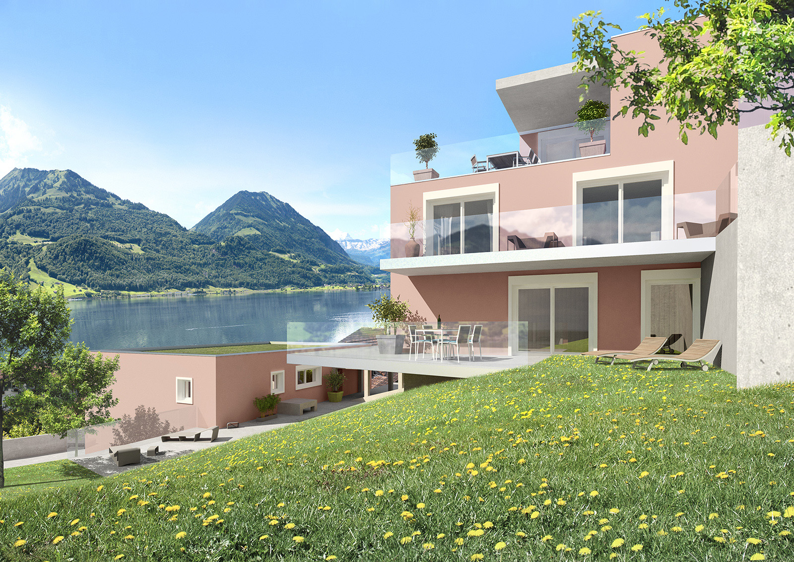 Alle Wohnungen haben grosszügige Terassen und Gärten. Hier die Terrasse von Sky Eden A.